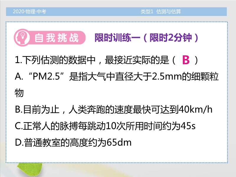 2020年中考物理题型专项突破选择题类型:1.估测与估算 讲座ppt