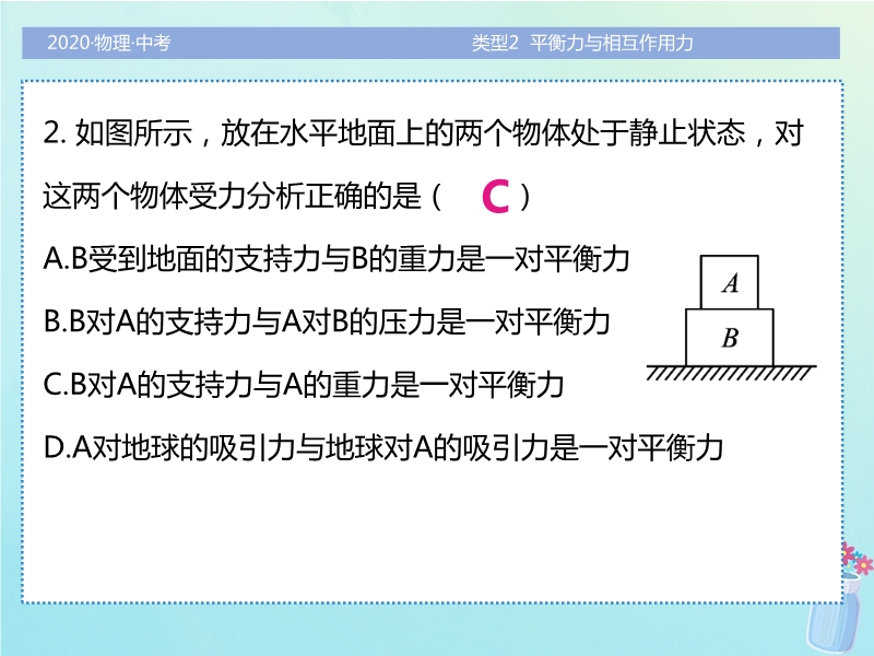 2020年中考物理题型专项突破选择题类型:2.平衡力与相互作用力 讲座ppt