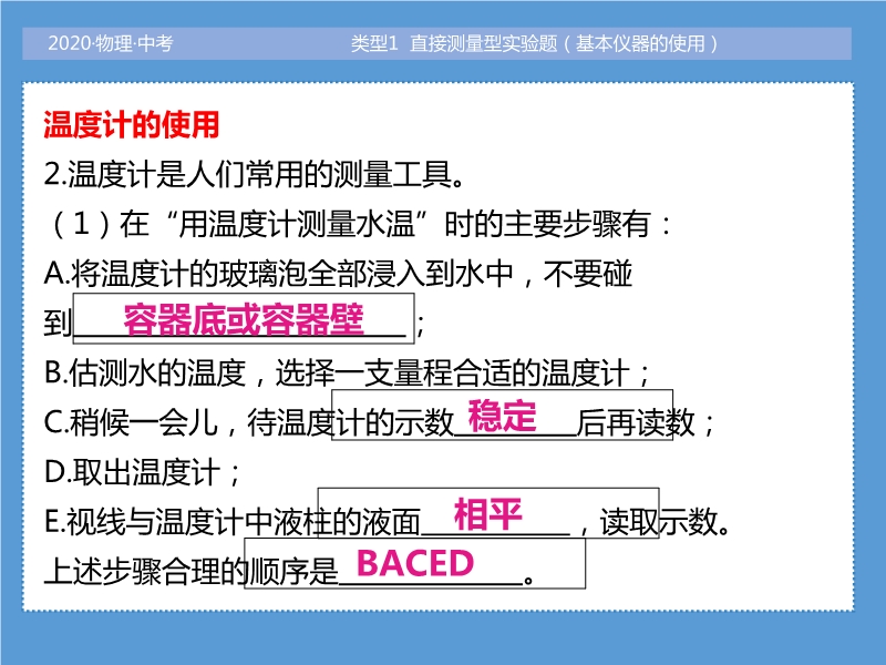 2020年中考物理题型专项突破实验与探究题类型:1.直接测量型实验题基本仪器的使用 讲座ppt