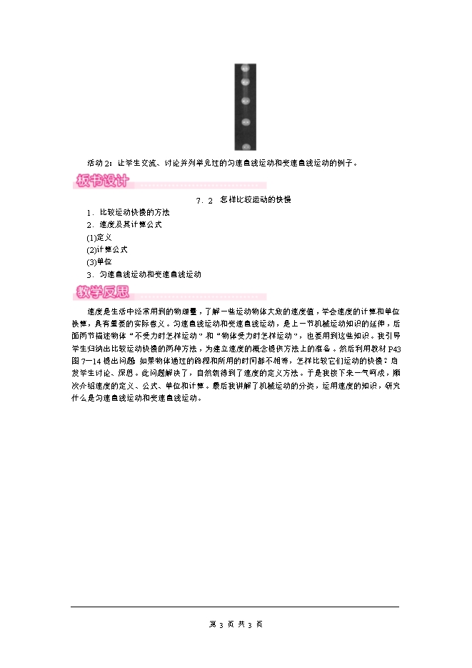 2020春沪粤版八年级物理下册《7.2怎样比较运动的快慢》教学设计(附教学反思)