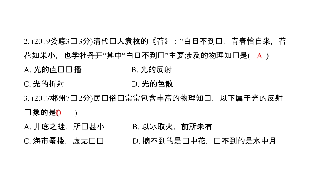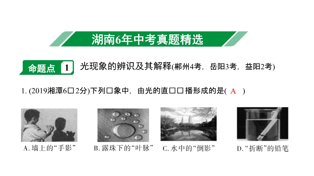 2020年湖南中考物理一轮满分攻略(课件+备考精练,含湖南6年真题):专题二 光现象 (共1份)