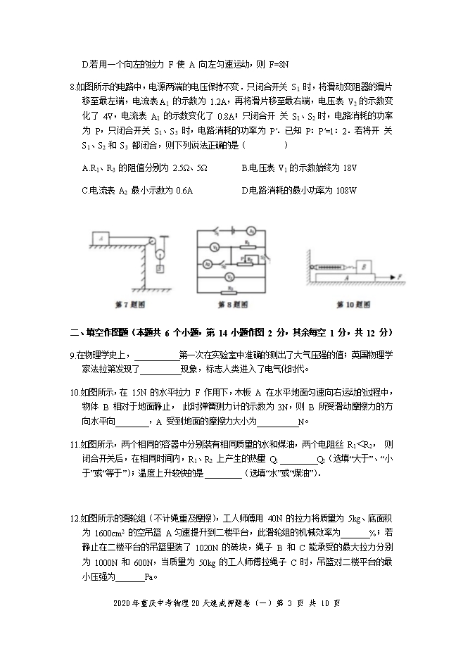 2020年重庆中考物理速成押题卷及答案(五)(word版)