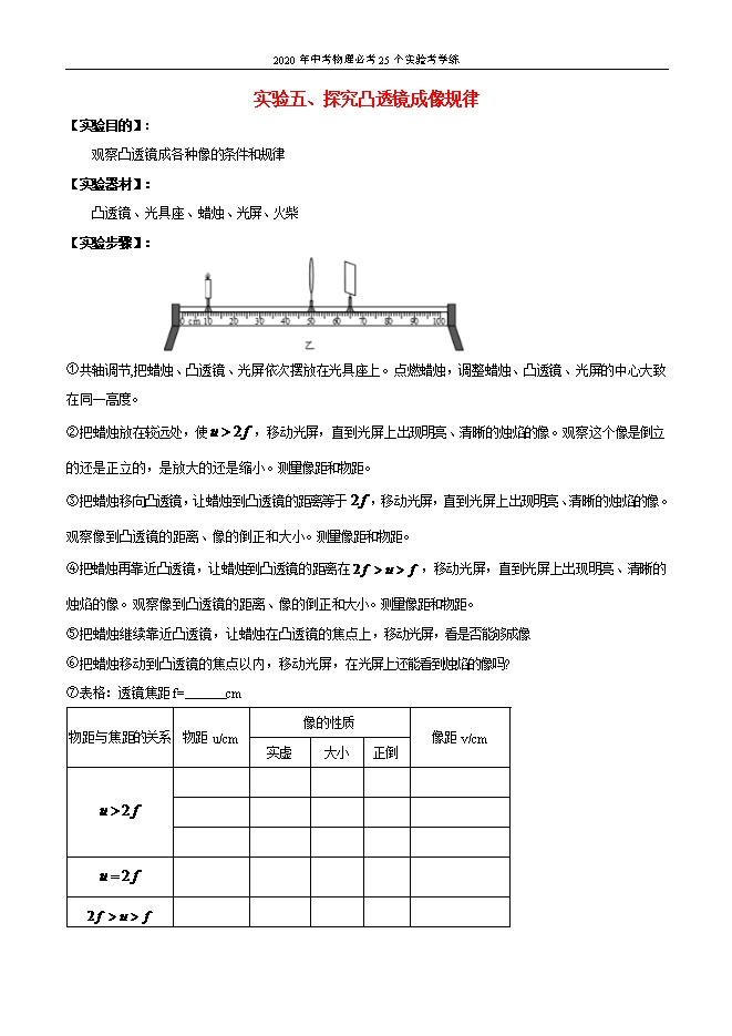 2020年中考物理必考25个实验考学练:实验05 探究凸透镜成像规律实验(原卷版和解析版)