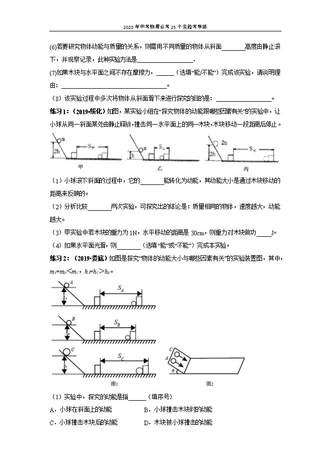 2020年中考物理必考25个实验考学练:实验17 探究动能大小的影响因素实验(原卷版和解析版)