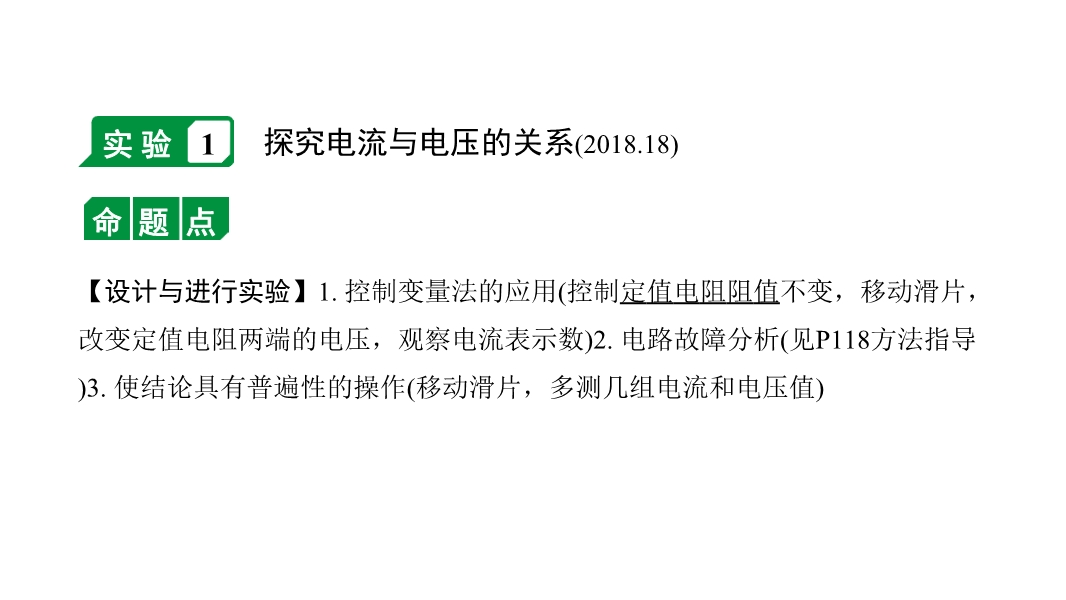 【内容简介】微专题3 欧姆定律的理解及简单计算类型1 欧姆定律的理解1. 关于欧姆定律的理解,下列说法中正确的是( )A. 加在导体两端的电压越大,则导体的电阻越大B. 通过导体的电流越大,则导体的电阻越小C. 当导体两端的电压为零时,导体的电阻也为零D. 导体的电阻跟导体两端的电压和通过导体的电流无关2. 关于电流、电压、电阻的关系,下列说法正确的是( )A. 在电压一定时,导体的电阻跟通过导体的电流成反比B. 在电阻一定时,通过导体的电流跟导体两端的电压成正比C. 在电流一定时,导体电阻跟导体两端电压成正比D. 导体两端的电压与通过导体的电流成正比、与导体的电阻成正比3. (2018凉山州)下图中能正确反映通过某一定值电阻的电流与它两端电压的关系的是( ) 类型2 欧姆定律的简单电路计算考向一 纯电路图类4. (2019衡阳)如图所示,电源电压U=2 V不变,R=4 Ω,虚线框内所有电阻均未知.闭合开关,电流表示数为1 A.如果用一个2 Ω的定值电阻替换R,虚线框内的电阻均保持不变,则电流表示数将变为( )......