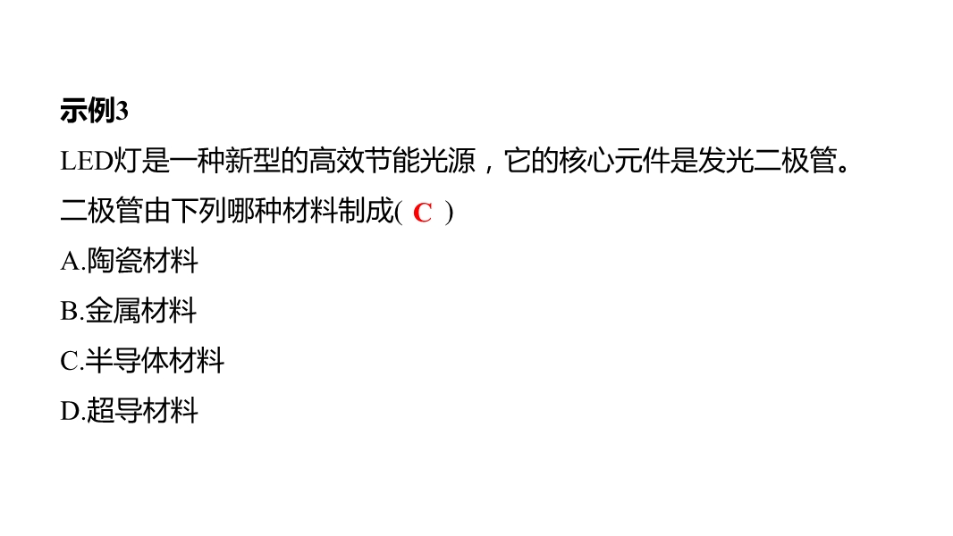 【内容简介】一、电磁波及其应用二、现代通信技术 1.微波通信:微波(属于电磁波)大致沿直线传播,不能沿地球表面绕射,因此需要依靠微波中继站转接信号。2.卫星通信:利用通信卫星作为微波中继站的通信方式。利用___颗同步卫星就可以实现全球通信。3.光纤通信:通过激光(属于电磁波)在光纤内壁上经过多次______,将信息传向远方的通信方式。4.网络通信:利用因特网实现资源共享和信息传递的通信方式。一、材料的物理性质及分类1.材料的物理性质:导热性、导电性、磁性、密度、比热容、弹性、硬度、延展性等。2.材料的分类:金属、无机非金属、有机高分子、复合材料等。二、半导体材料、超导材料、纳米材料1.半导体材料(1)常见半导体:硅、锗、砷化镓。(2)应用:半导体二极管(单向导电性);半导体三极管(放大电信号);太阳能电池;条形码扫描器;微处理器等。2.超导材料:电阻为0,应用有超导磁浮列车。3.纳米材料:指制成材料的基本尺度大小限制在1~100nm范围内的材料,优点是提高材料的强度和硬度,降低烧结温度,提高磁性等。..........