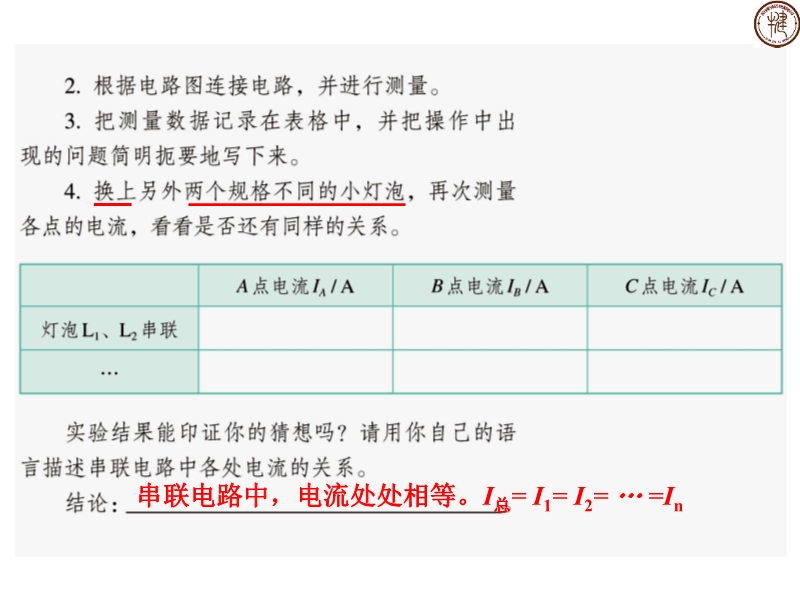 人教版九年级物理全册《励志自学课件》专辑:15.5串、并联电路中电流的规律