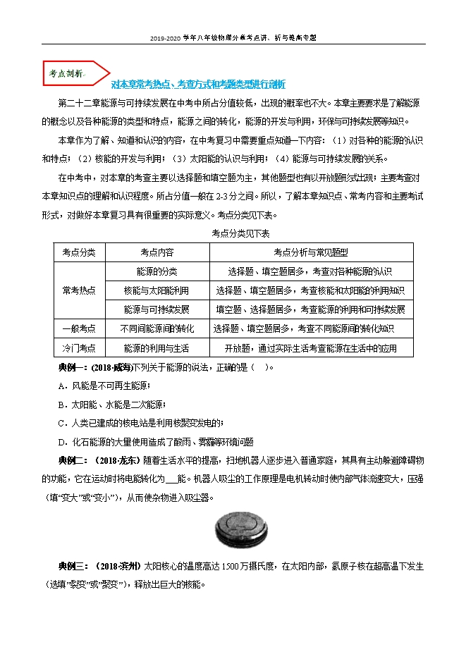 2019-2020学年八年级物理分章考点讲、析与提高专题:22.能源与可持续发展(单元考点讲、析)(人教版)