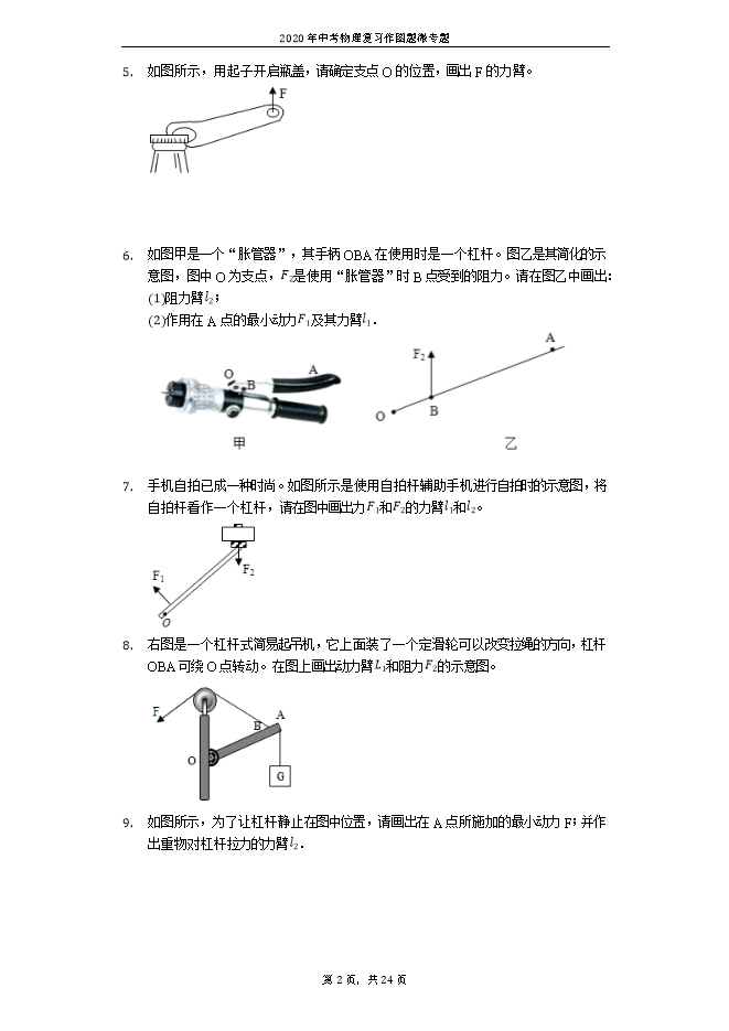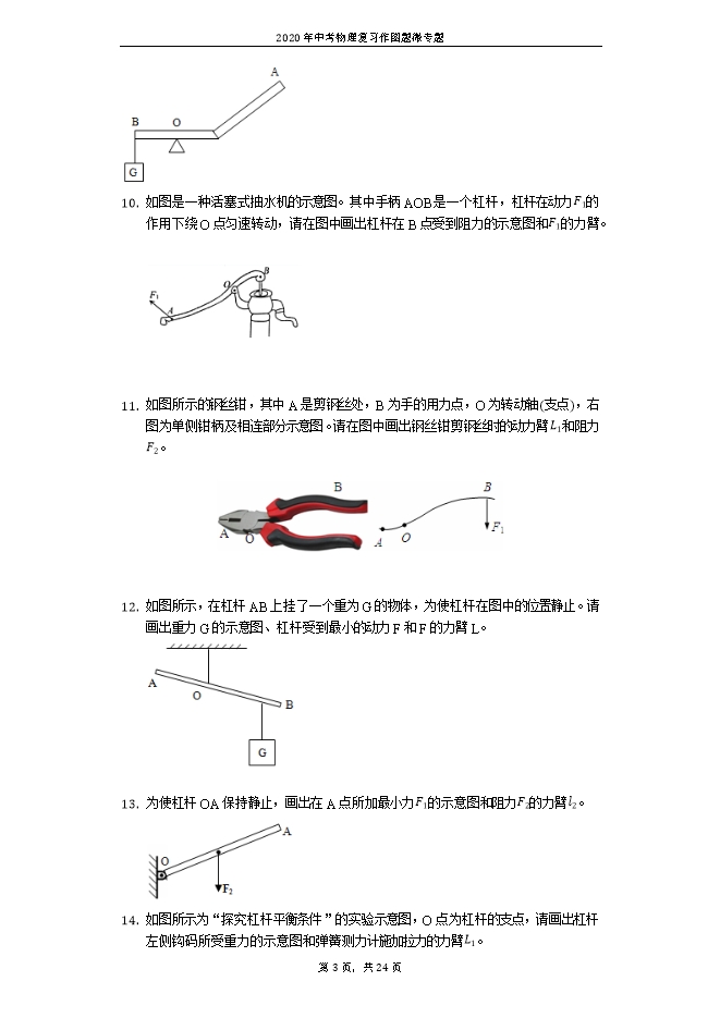 2020年中考物理复习作图题微专题《杠杆作图》强化训练题(附答案和解析)