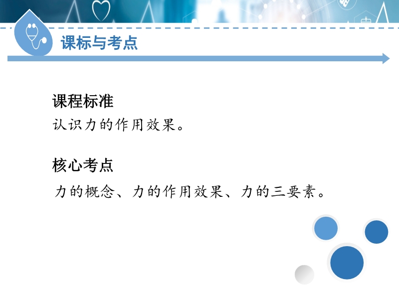 【内容简介】课程标准认识力的作用效果核心考点力的概念、力的作用效果、力的三要素。1. 一个物体对另一个物体施力时,同时也受到另一个物体对它的作用,这说明力的作用是__________的;施加力的物体叫__________物体,受到力的物体叫__________物体。2. 力用符号__________表示,力的单位是_________,用符号_____表示;托起两个鸡蛋的力约为_____N。3. 力可以使物体发生 ,也可以使物体的 发生改变。4. 力的 、 和 叫做力的三要素。1.物体运动的速度大小和运动方向任何一个发生改变,均可以说物体的__________发生了改变,如踢球时,球由静止变为运动、匀速圆周运动等。2.相互作用力:力的大小________,方向________,作用在__________个物体上。.......