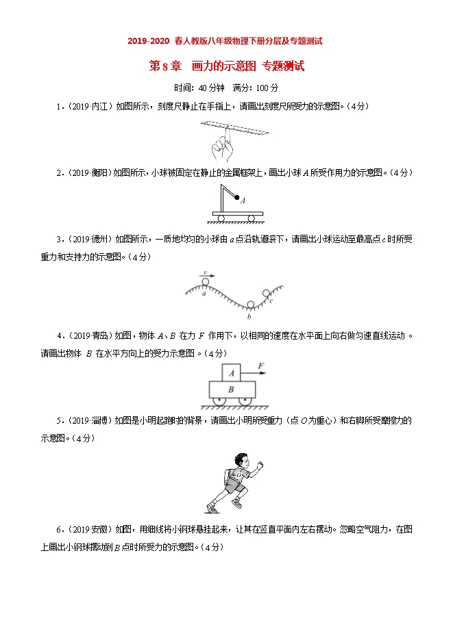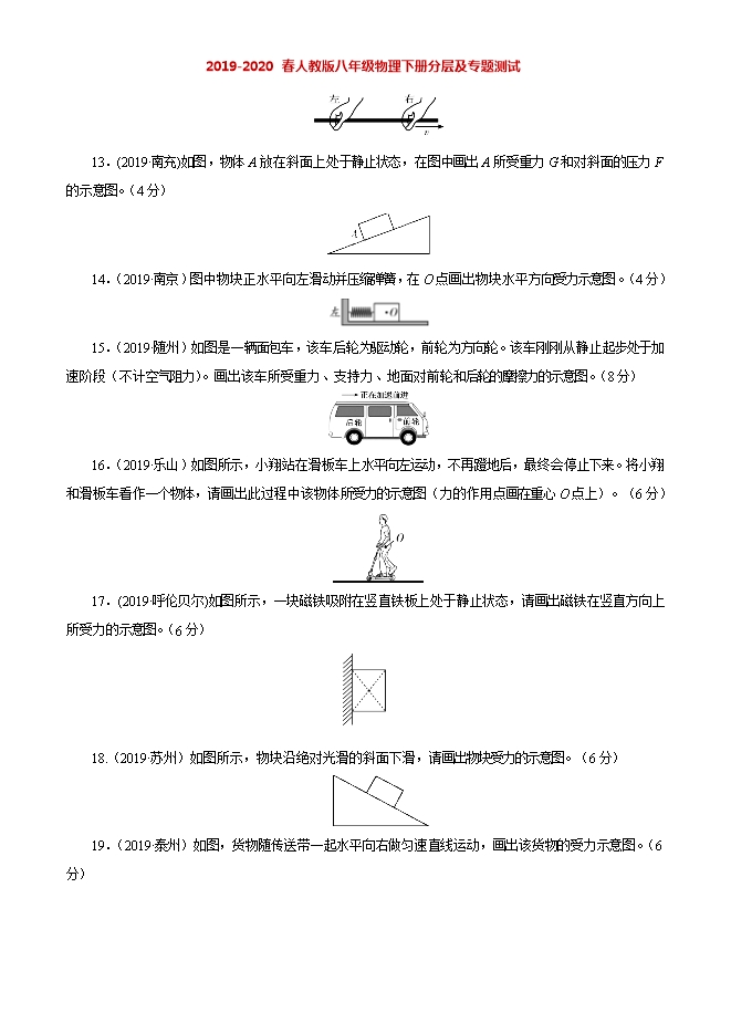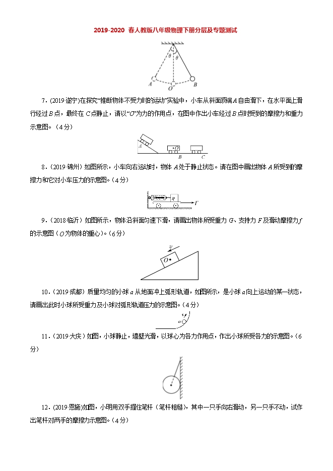 2019-2020春人教版八年级物理下册分层及专题测试:第8章 画力的示意图(专题测试卷)