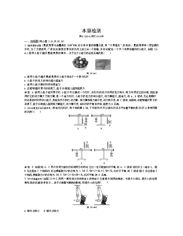 【打包】2019-2020年人教版物理八年级下册课时检测与拓展训练:第十二章 简单机械(共7份,附答案)