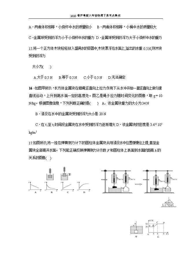 2020春沪粤版八年级物理下册考点集训:9.2 阿基米德原理(附答案)