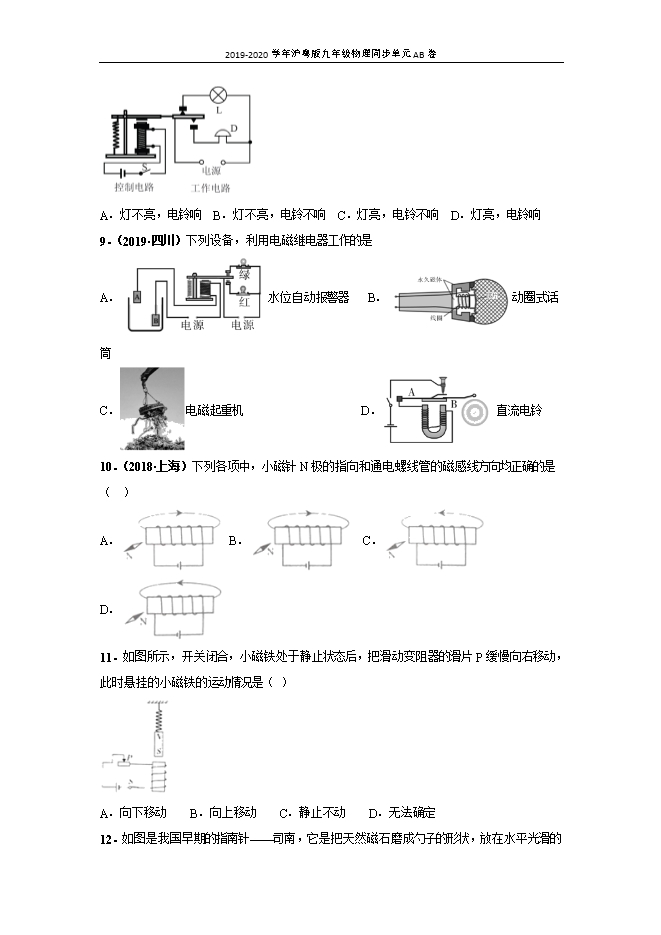 2019-2020学年沪粤版九年级物理同步单元AB卷:第16章 电磁铁与自动控制(A卷基础篇)