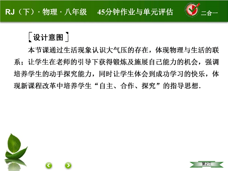 - 558人教版初中物理八下《9.3大气压强》创新课教学视频