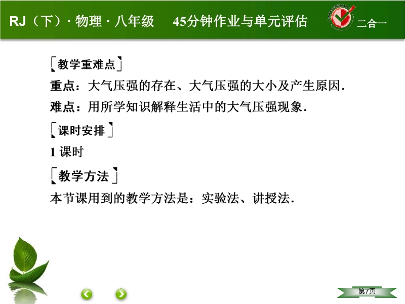 - 891【教学课件】人教版八年级物理 第九章 压强 第3节 大气压强 精品课件与配套教案