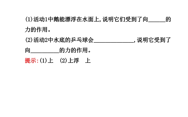 【内容简介】一、浮力1.定义:浸在任何液体中的物体受到的液体_________的托力。2.方向:_________。3.大小(称重法):浮力的大小等于弹簧测力计在空气中称物体和在水中称物体时两次示数的_____,即F浮=____。4.产生:(1)原因:由于液体对浸在它里面的物体___________________产生的。(2)大小:即F浮=______(F上表示液体对物体向上的压力,F下表示液体对物体向下的压力)。二、影响浮力大小的因素1.有关因素:跟_____________________和___________有关,浸入液体中的体积越大,液体的密度越大,物体受到的浮力_____。2.无关因素:浸没在同种液体中的物体所受浮力跟物体浸入液体中的深度_____。
