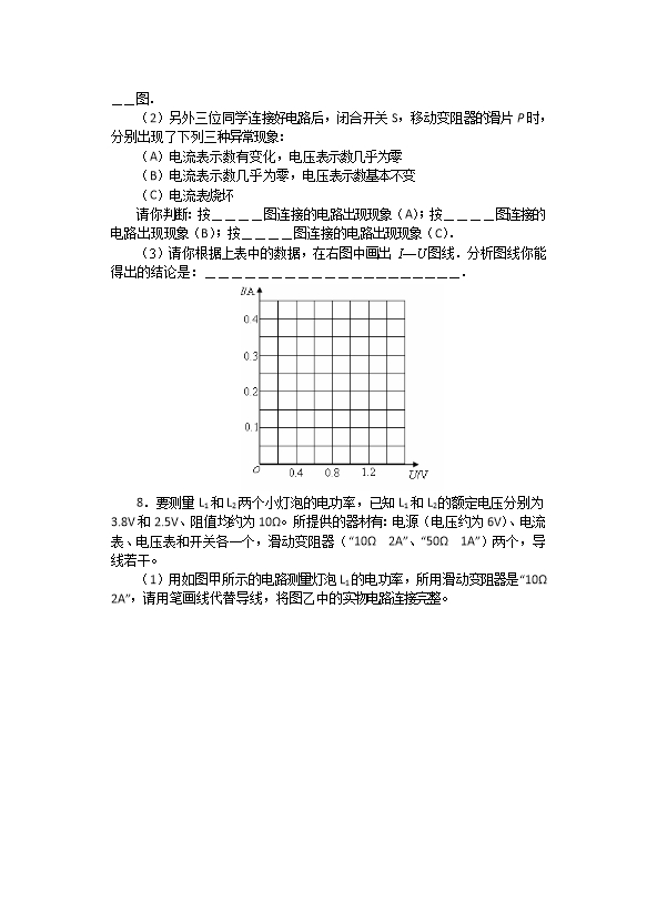 【内容简介】1.“低能耗”、“低排放”是低碳理念的重要内涵。下列做法不符合低碳理念的是A.推广利用用太阳能 B.循环使用生活用水C.家用电器长期处于待机状态 D.回收有机垃圾用于生产沼气 2. 持续绕月9个多月的“嫦娥二号”卫星加速以离开月球继续进行深空探测.如图所示,A、B为卫星的两个喷气发动机.根据表中指令可知,使“嫦娥二号”卫星加速离月的信号应为 A.0010010001 B.0010001110C.1101110001 D.1101101110 3.如图所示为手机电池,***mAh看不清了,但发现了4.07Wh字样(如图甲)。此电池在充满电时贮存的电能为__________J。电极处略有凹陷(如图乙),可以在一定程度上防止与硬币、钥匙等金属物体接触引起_____________从而损坏电池。 4. 图中所示为冠状病毒在30万倍电子显微镜下成的像与刻度尺比对情况,该病毒的实际整体宽度为____m.使用透气孔径为3.0×10-7m的N95型口罩____(能/不能)有效遮挡甲型H1N1病毒. 5.小华用如图所示的电路探究电流与电阻的关系.已知电源电压为6V,滑动变阻器R2的最大电阻为20Ω,电阻R1为10Ω.实验过程中,将滑动变阻器滑片移到某一位置时,读出电阻R1两端电压为4V,并读出了电流表此时的示数.紧接着小华想更换与电压表并联的电阻再做两次实验,可供选择的电阻有15Ω、30Ω、45Ω和60Ω各一个,为了保证实验成功,小华应选择的电阻是 Ω和 Ω. 6.“一滴水可能引起一场火灾”,这是危言耸听还是真知灼见?请你从光学的角度谈谈你对这句话的见解。答案:水珠相当于凸透镜,它对光线具有会聚作用,在一些特定的条件下,会因为会聚的阳光恰好使易燃物因温度升高而燃烧,发生火灾。7.用实验室提供的常用器材(电源是一节干电池)测电阻时,小明与另外三位同学各自设计了下列甲、乙、丙、丁四个电路图.