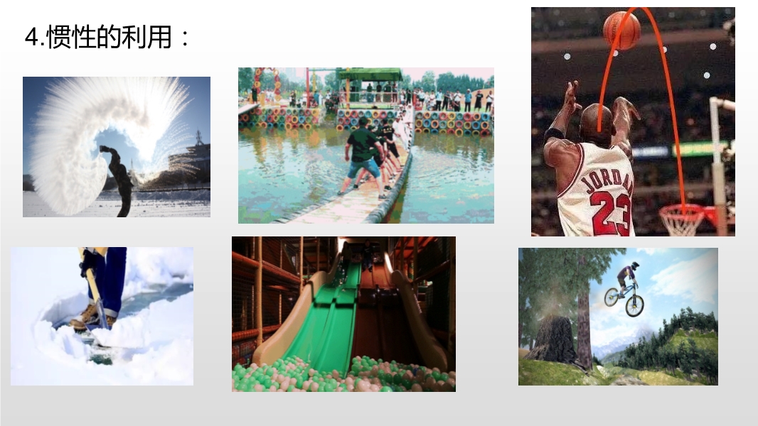 【内容简介】一、惯性1.定义:我们把物体保持静止或匀速直线运动状态的性质叫作物体的惯性。2.说明:(1)一切物体都具有惯性。(固液气、运动静止、受力不受力……)(2)惯性是物体本身的一种属性,不是力,只能说物体“具有”惯性,不能说物体“受到”惯性或“由于惯性的作用”,更不能说“惯性力”。补充:惯性没有方向,不能说向哪~~的惯性。(3)惯性大小只与物体的质量有关,与其它因素无关;且质量越大,惯性越大。