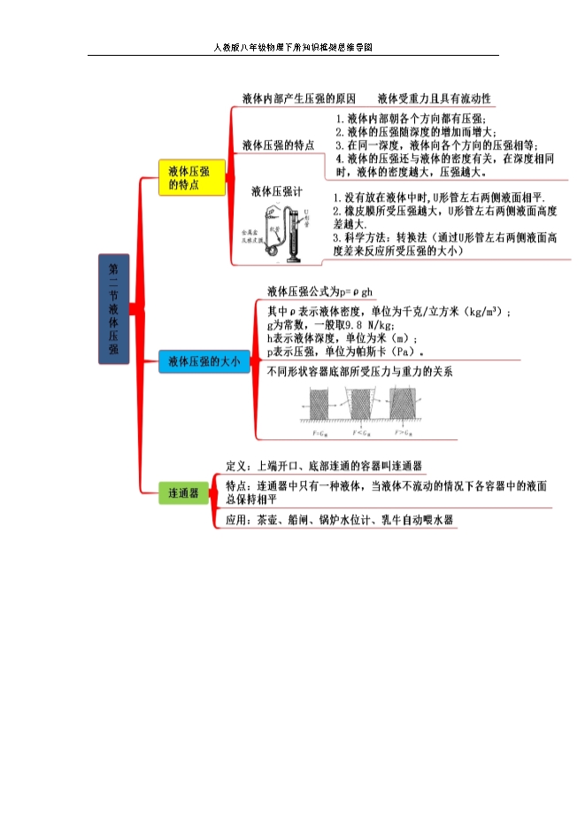 【内容简介】人教版八年级物理下册知识框架思维导图:第九章 压强