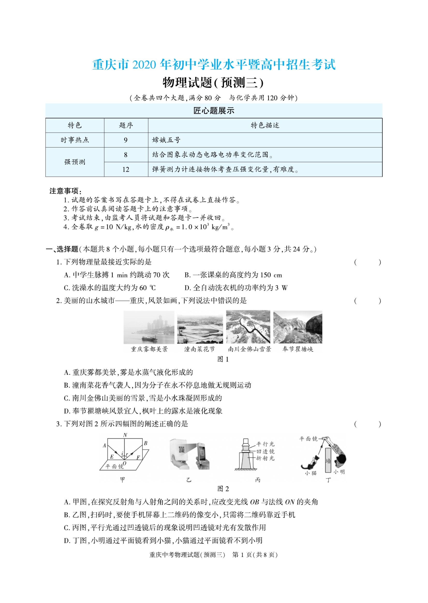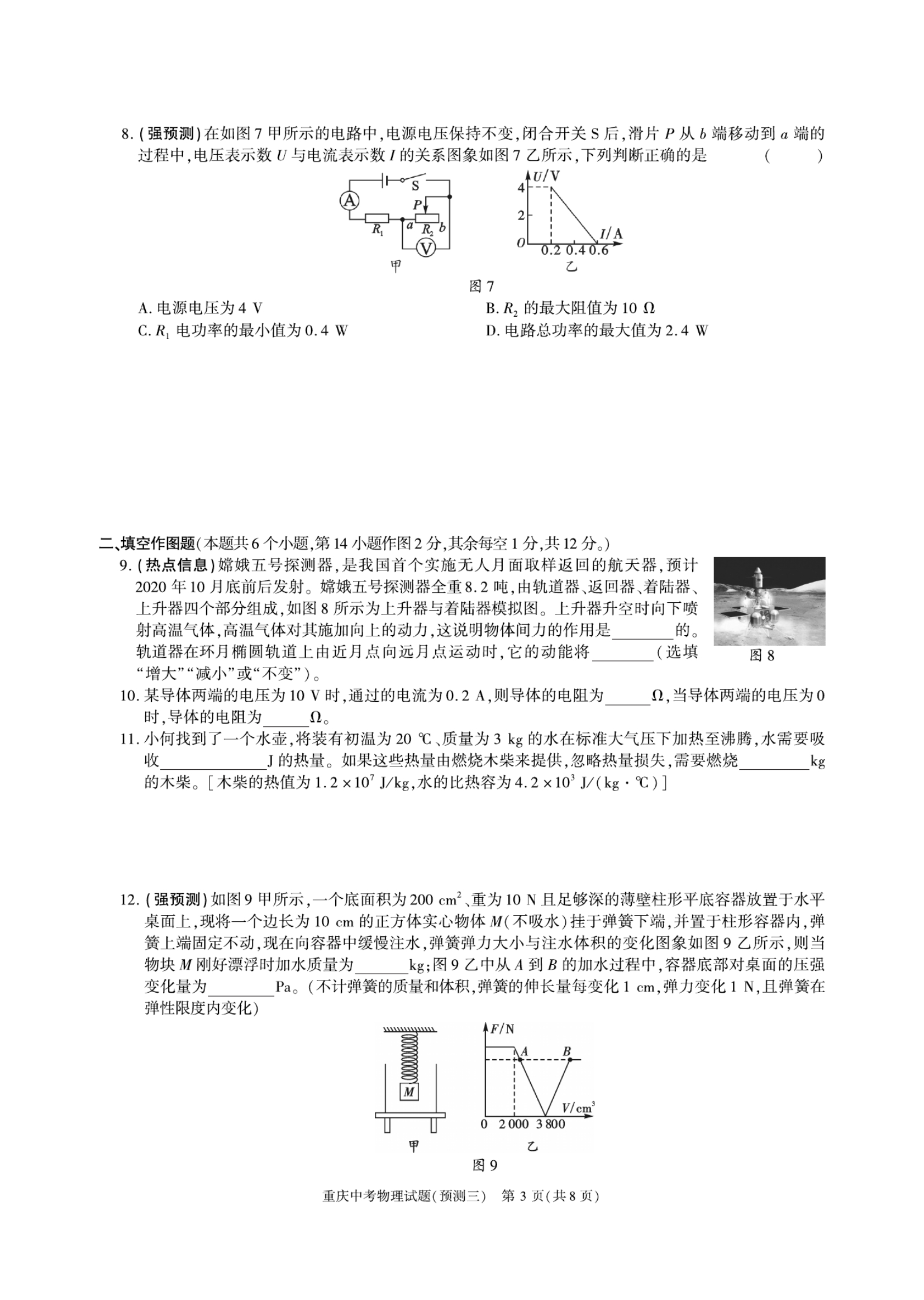 【内容简介】重庆市2020年初中学业水平暨升学高中招生考试物理预测卷(三)(扫描版、无答案)