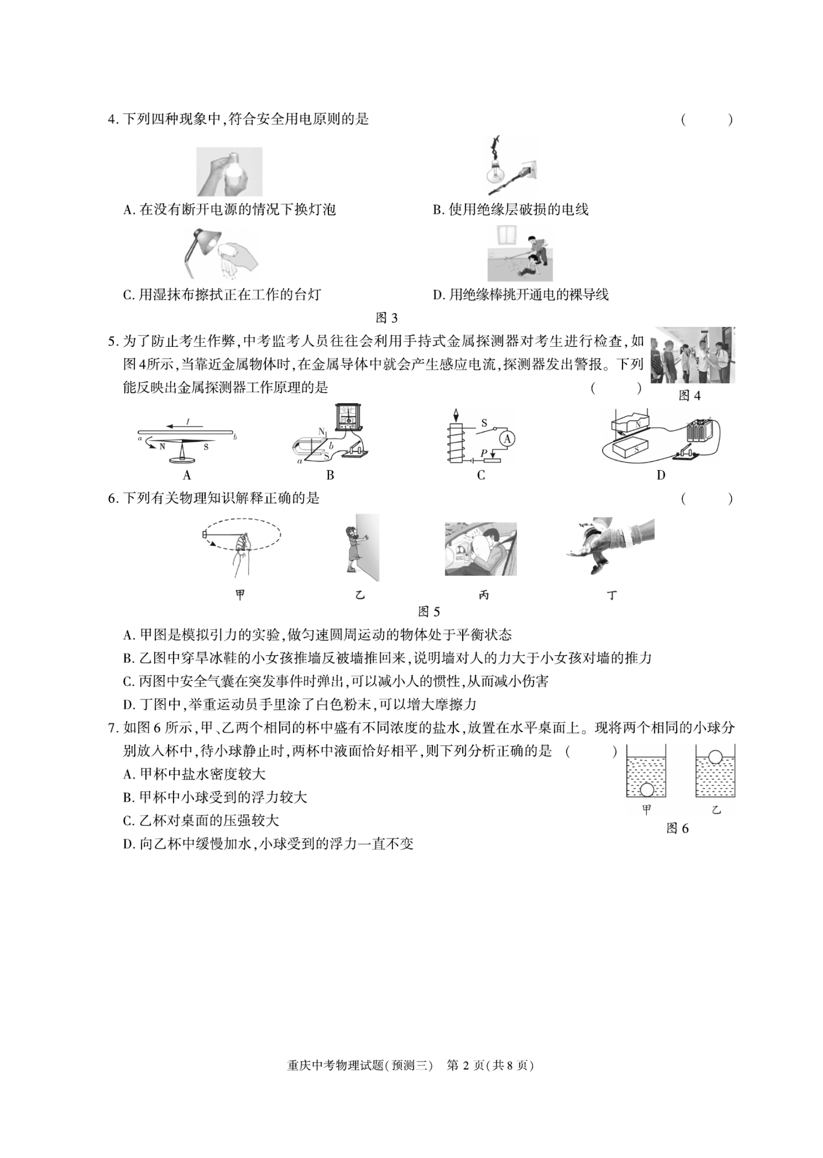 重庆市2020年初中学业水平暨升学高中招生考试物理预测卷(三)(扫描版、无答案)