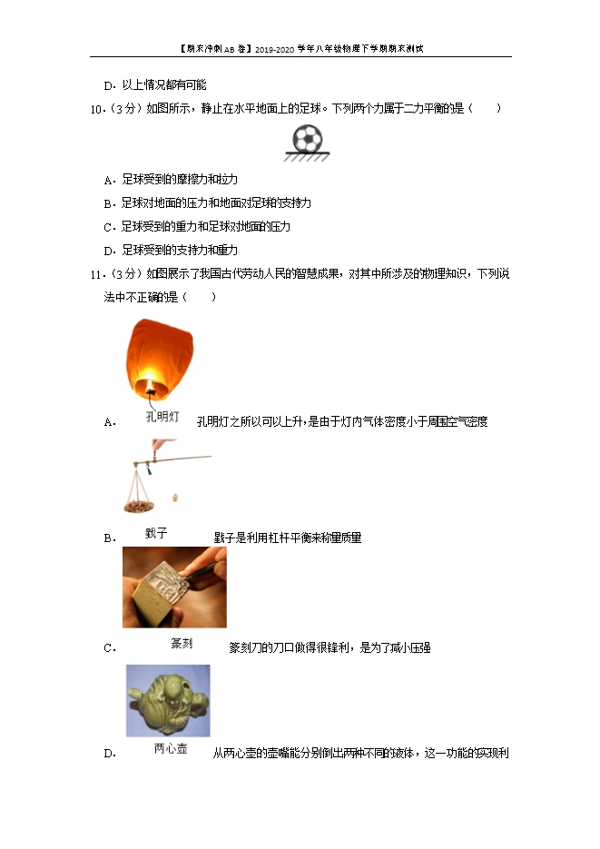 所属专辑: 【期末冲刺AB卷】2019-2020学年八年级物理下学期期末测试卷