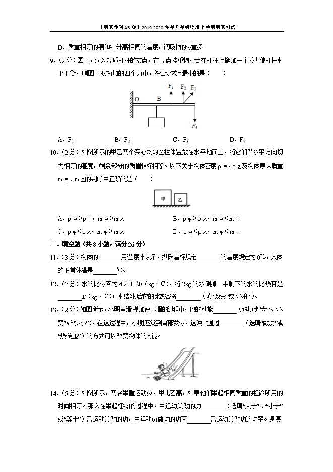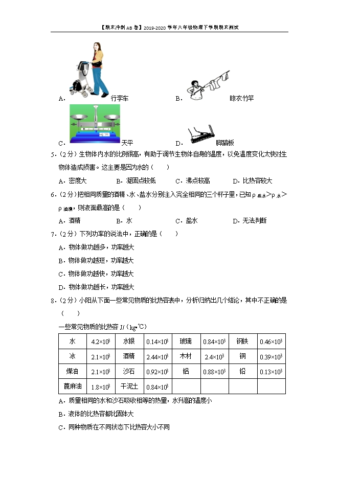 所属专辑: 【期末冲刺AB卷】2019-2020学年八年级物理下学期期末测试卷