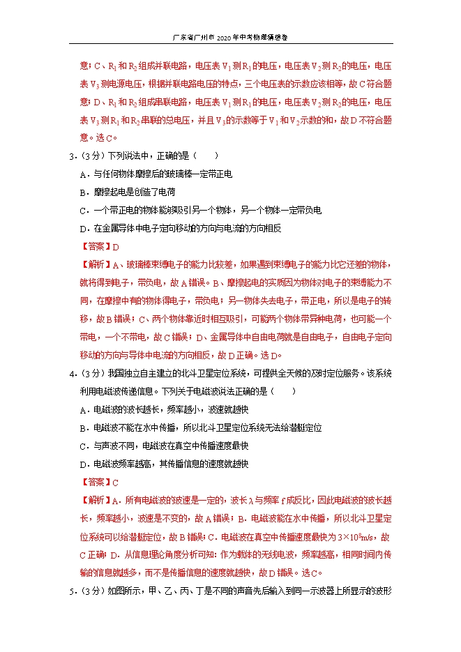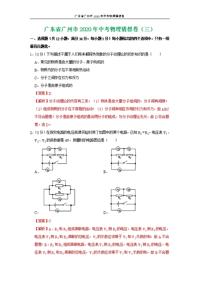 福建省2020年中考物理猜想卷(三)(原卷版和解析版)