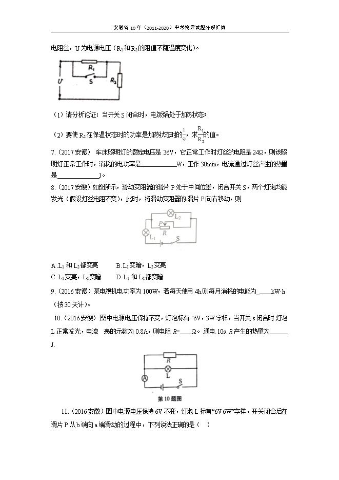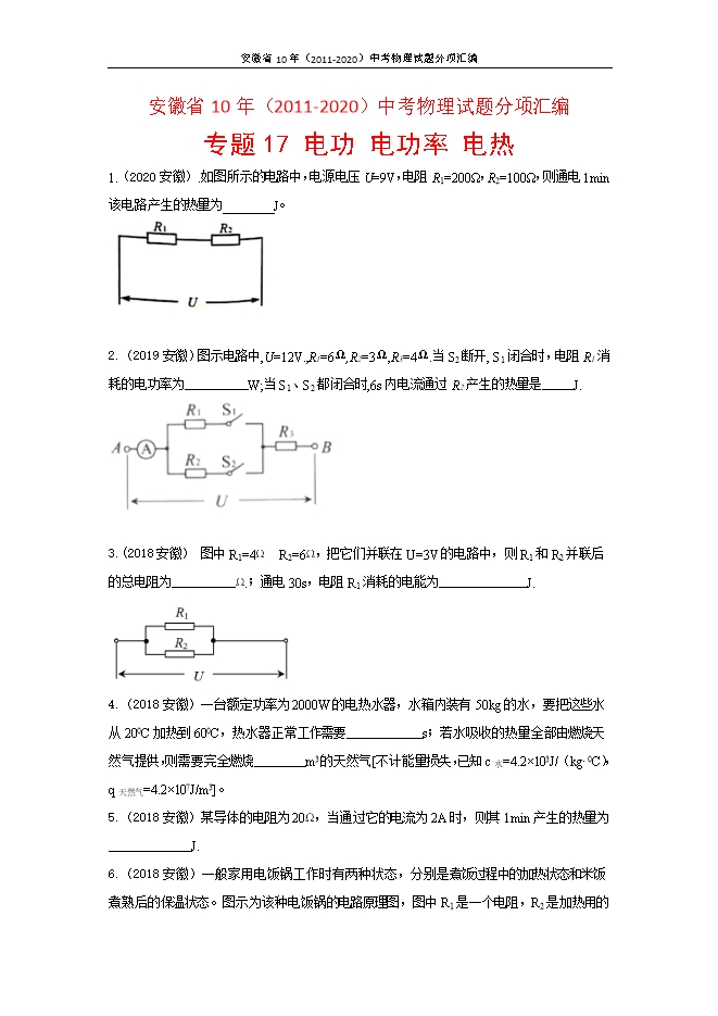 【内容简介】一.选择题(共12小题,满分36分,每小题3分)每小题给出的四个选项中,只有一项最符合题意。1.(3分)下列描述不属于人们用来解释热现象的分子动理论的初步知识的是( )A.常见的物质是由大量的分子、原子构成的B.物质内的分子在不停地做热运动C.分子之间存在引力和斥力D.分子是由原子组成的【答案】D【解析】分子动理论的内容有三条:(1)物体是由大量分子组成的,分子间有间隙;(2)组成物质的分子在不停息的运动;(3)分子间有相互作用的引力和斥力,故ABC不符合题意;分子是由原子组成的是说明分子的组成,与分子动理论无关,故D符合题意。选D。2.(3分)在探究电路的电压规律实验时用了如图中的某个电路,已知R1=R2,电压表V1、V2、V3的读数都是4V,测量时的电路图应是( )A. B. C. D. 【答案】C【解析】A、R1和R2组成串联电路,电压表V1测R2的电压,电压表V2测R1的电压,电压表V3测R1和R2串联的总电压,V3的示数应该等于V1和V2示数的和,故A不合题意;B、R1和R2组成串联电路,电压表V1测R2的电压,电压表V2测R1的电压,电压表V3测R1和R2串联的总电压,V3的示数应该等于V1和V2示数的和,故B不合题意;C、R1和R2组成并联电路,电压表V1测R1的电压,电压表V2测R2的电压,电压表V3测电源电压,根据并联电路电压的特点,三个电压表的示数应该相等,故C符合题意;D、R1和R2组成串联电路,电压表V1测R1的电压,电压表V2测R2的电压,电压表V3测R1和R2串联的总电压,并且V3的示数等于V1和V2示数的和,故D不符合题意。选C。3.(3分)下列说法中,正确的是( )A.与任何物体摩擦后的玻璃棒一定带正电B.摩擦起电是创造了电荷......
