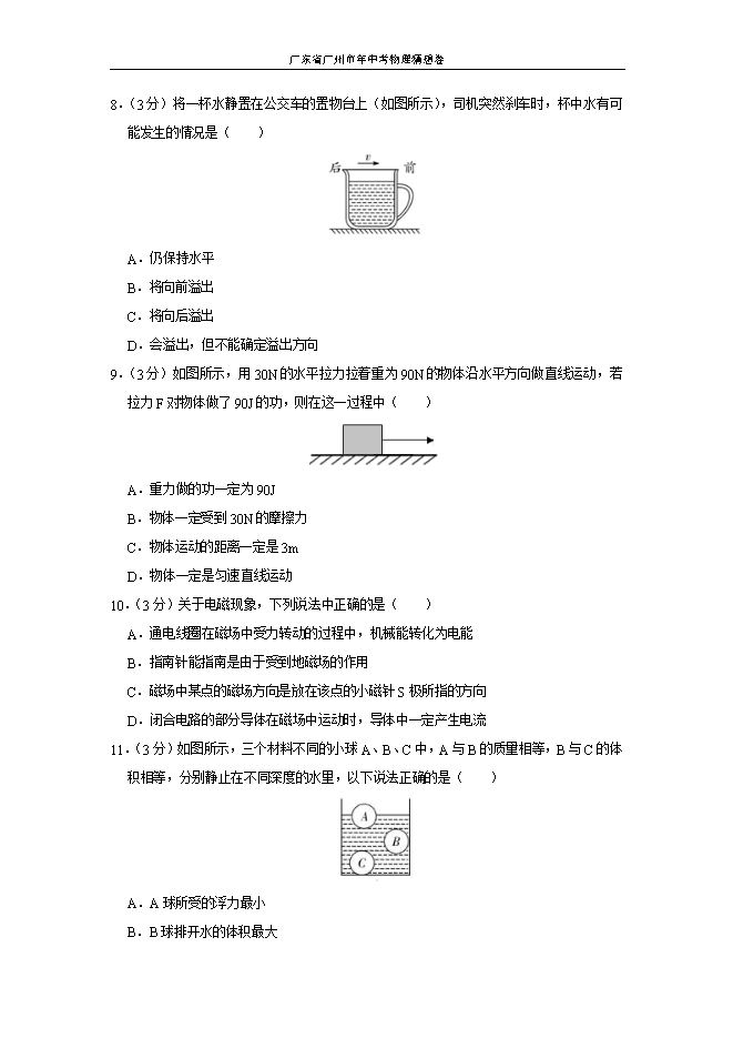 广东省广州市2020年中考物理猜想卷(四)(原卷版和解析版)