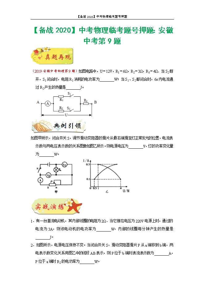 【备战2020】中考物理临考题号押题:安徽中考第9题(原卷版和解析版)