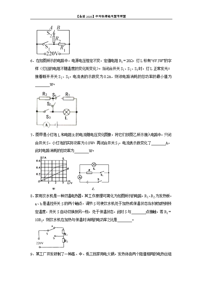 所属专辑: 【备战2020】中考物理临考题号押题:安徽中考(原卷版和解析版)