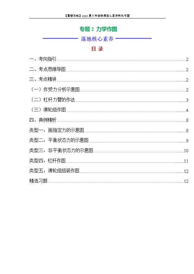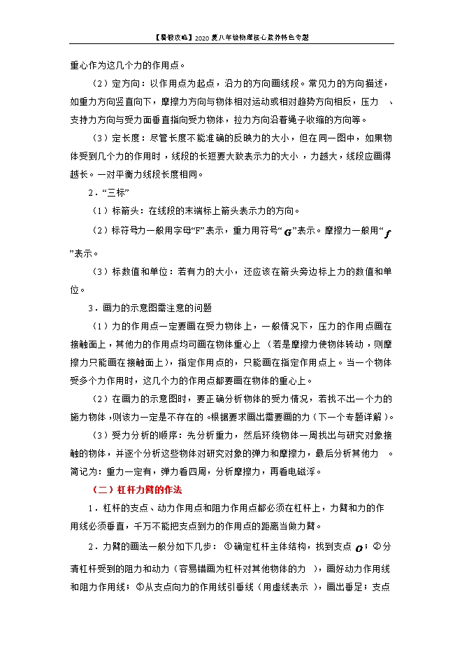 【暑假攻略】2020夏八年级物理核心素养特色专题:专题二 力学作图(附课时作业及答案)