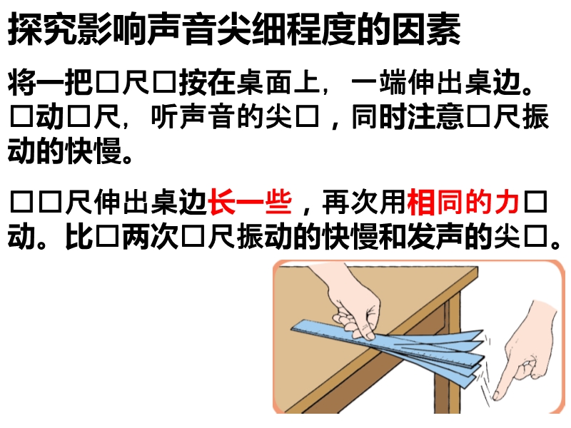 【内容简介】为什么歌声中有的声音听起来调高,有的听起来调低呢?(即1、2、3…)女生说话一般声音比较细/尖细?而男生说话声音一般比较粗/低沉?声音的粗细或者说尖细程度到底跟什么有关呢?我们知道,声音是由声源振动产生的。猜想:调高/低与声源振动有关探究影响声音尖细程度的因素声源每秒振动的次数叫频率。频率是描述发声体振动快慢的物理量音调的高低与发声物体的振动频率有关。振动频率越大,发出的声音音调越高;振动频率越小,音调越低。.......