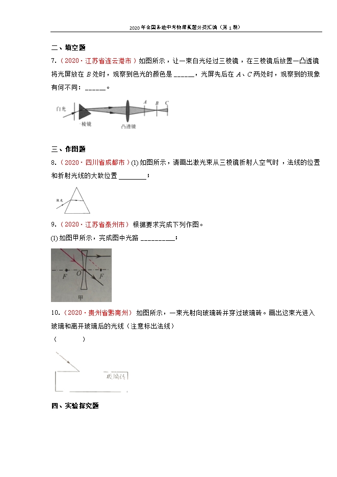 2020年全国各地中考物理真题分类汇编(第1期):专题05 透镜及其应用(原卷版和解析版)