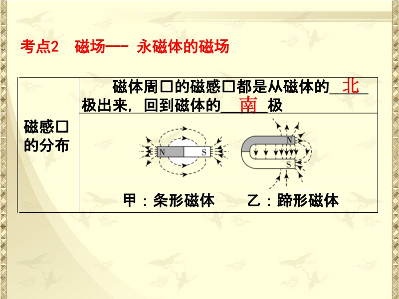 【内容简介】考点1 磁现象 1.磁性:物体能吸引铁、钴、镍等物质的一种性质。2.磁体:具有磁性的物体。3.磁极:磁体上磁性最强的部分。磁体都有两个磁极:南极(S)和北极(N)。一个永磁体分成多个部分后,每一部分仍存在两个磁极。 4.磁极间的相互作用:同名磁极相互________,异名磁极相互________。 5.磁化:使没有磁性的物体获得磁性的过程。物体是否具有磁性的判断方法:①根据磁体的吸铁性判断;②根据磁体的指向性判断;③根据磁体相互作用规律判断。 考点2 磁场--- 永磁体的磁场......