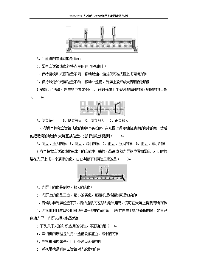 2020-2021人教版八年级物理上册同步讲练测:第五章 透镜及其应用 单元检测试卷(教师版+学生版)