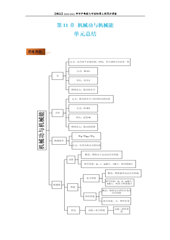【精品】2020-2021学年沪粤版九年级物理上册同步课堂:第11章 机械功与机械能(单元测试和单元总结)