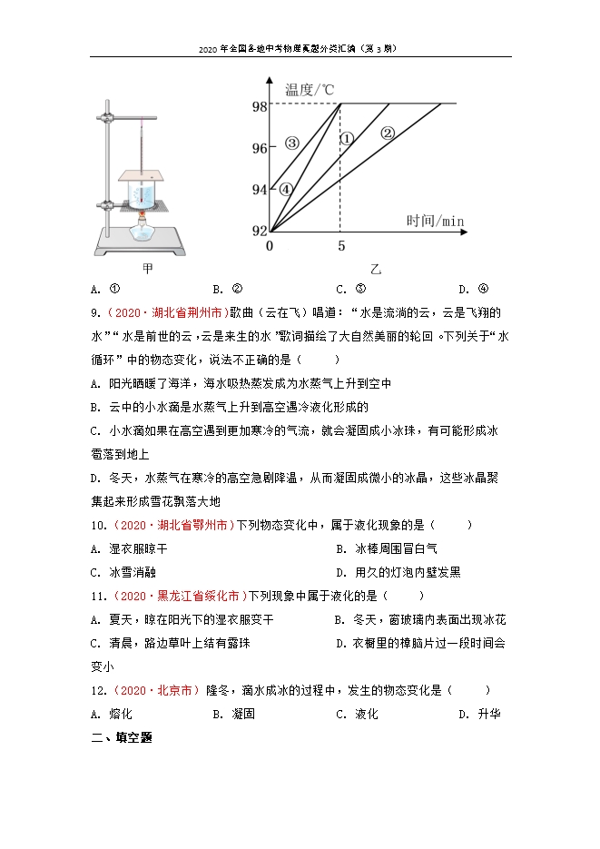 2020年全国各地中考物理真题分类汇编(第3期):专题03 物态变化(原卷版和解析版)