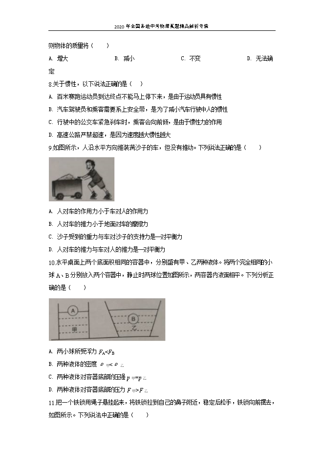 - 2982020年全国各地中考物理真题精品解析专辑:新疆自治区、生产建设兵团卷(word解析版和原卷版)