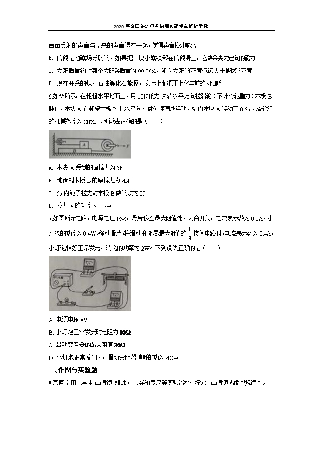 - 6442020年全国各地中考物理真题精品解析专辑:上海卷(word解析版和原卷版)