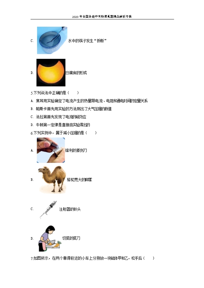 - 4912020年全国各地中考物理真题精品解析专辑:四川成都卷(word解析版和原卷版)