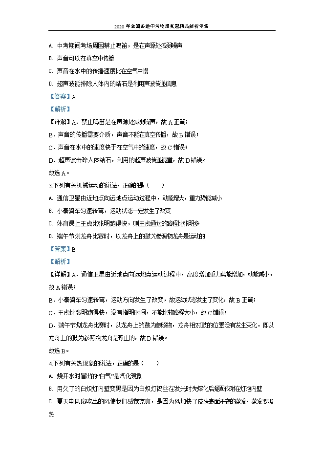 - 14252020年全国各地中考物理真题精品解析专辑:四川达州卷(word解析版和原卷版)