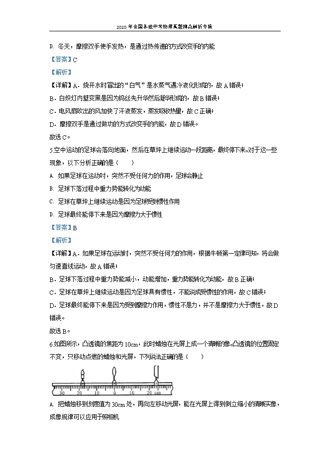 - 4912020年全国各地中考物理真题精品解析专辑:四川成都卷(word解析版和原卷版)