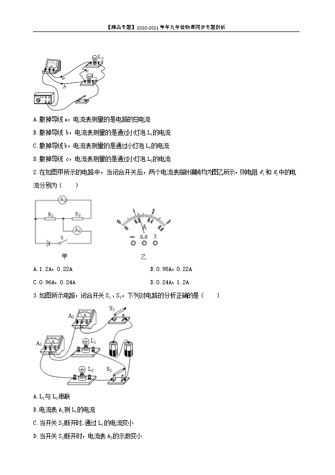 【精品专题】2020-2021学年九年级物理同步专题剖析:11 探究串、并联电路中电流规律(实验类)(原卷版和解析版)