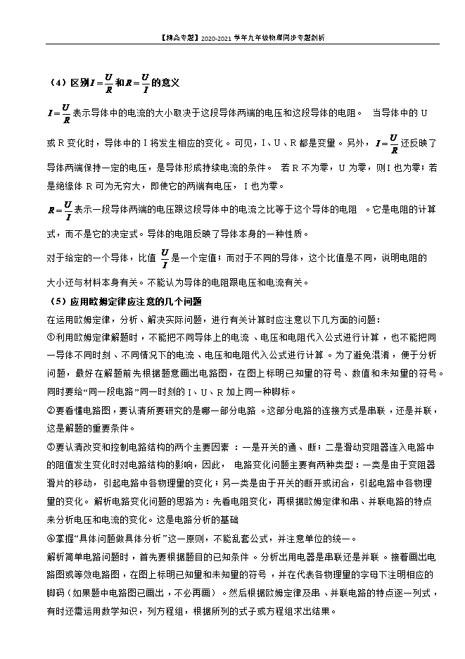 - 1318【精品专题】2020-2021学年九年级物理同步专题剖析:21 欧姆定律的动态电路分析(原卷版和解析…