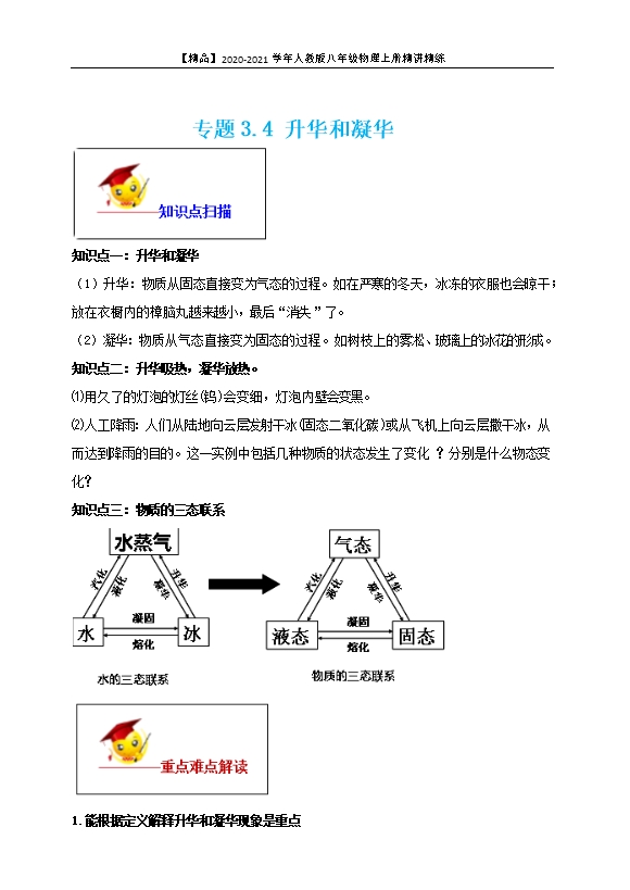 【精品】2020-2021学年人教版八年级物理上册精讲精练:3.4升华和凝华(原卷版和解析版)