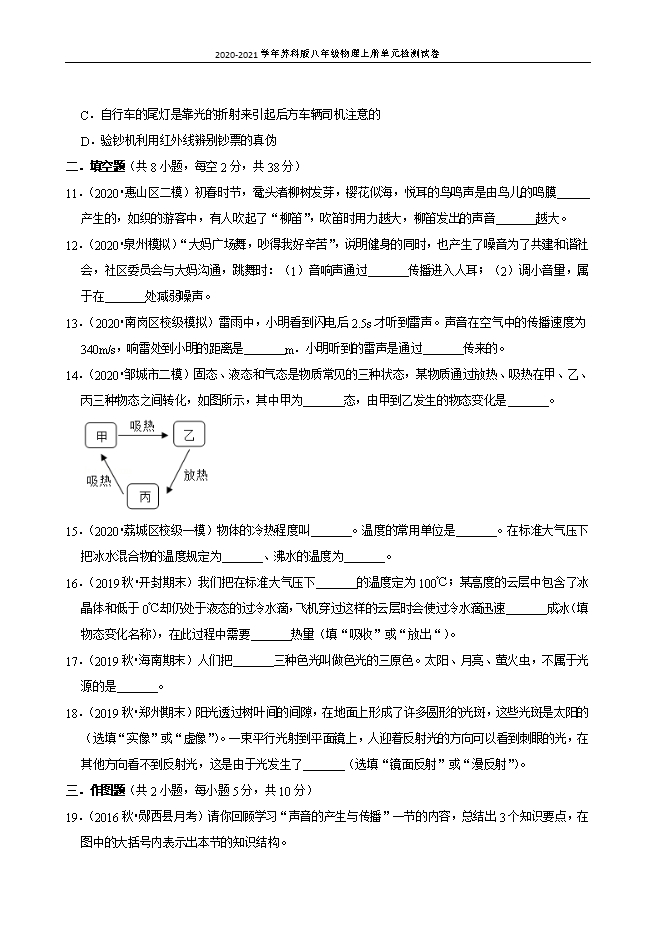 - 5132020-2021学年苏科版八年级物理上册单元检测试卷:第二章 物态变化(附答案)