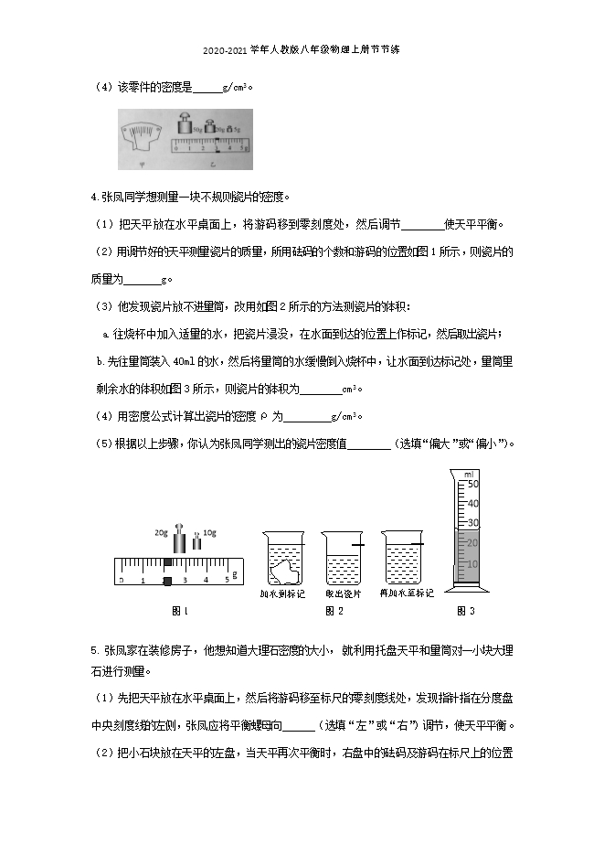 2020-2021学年人教版八年级物理上册节节练:6.3 测量固体的密度(第2课时)(原卷版和解析版)